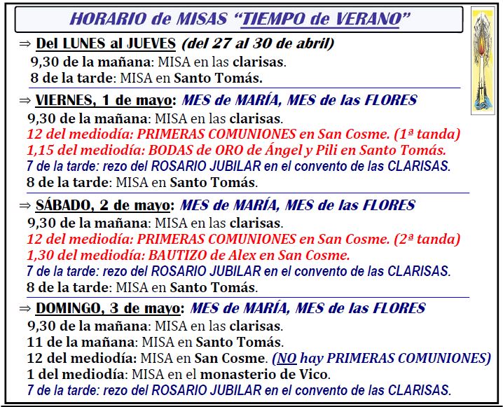 Hoja parroquial de este Domingo, 26 de abril…